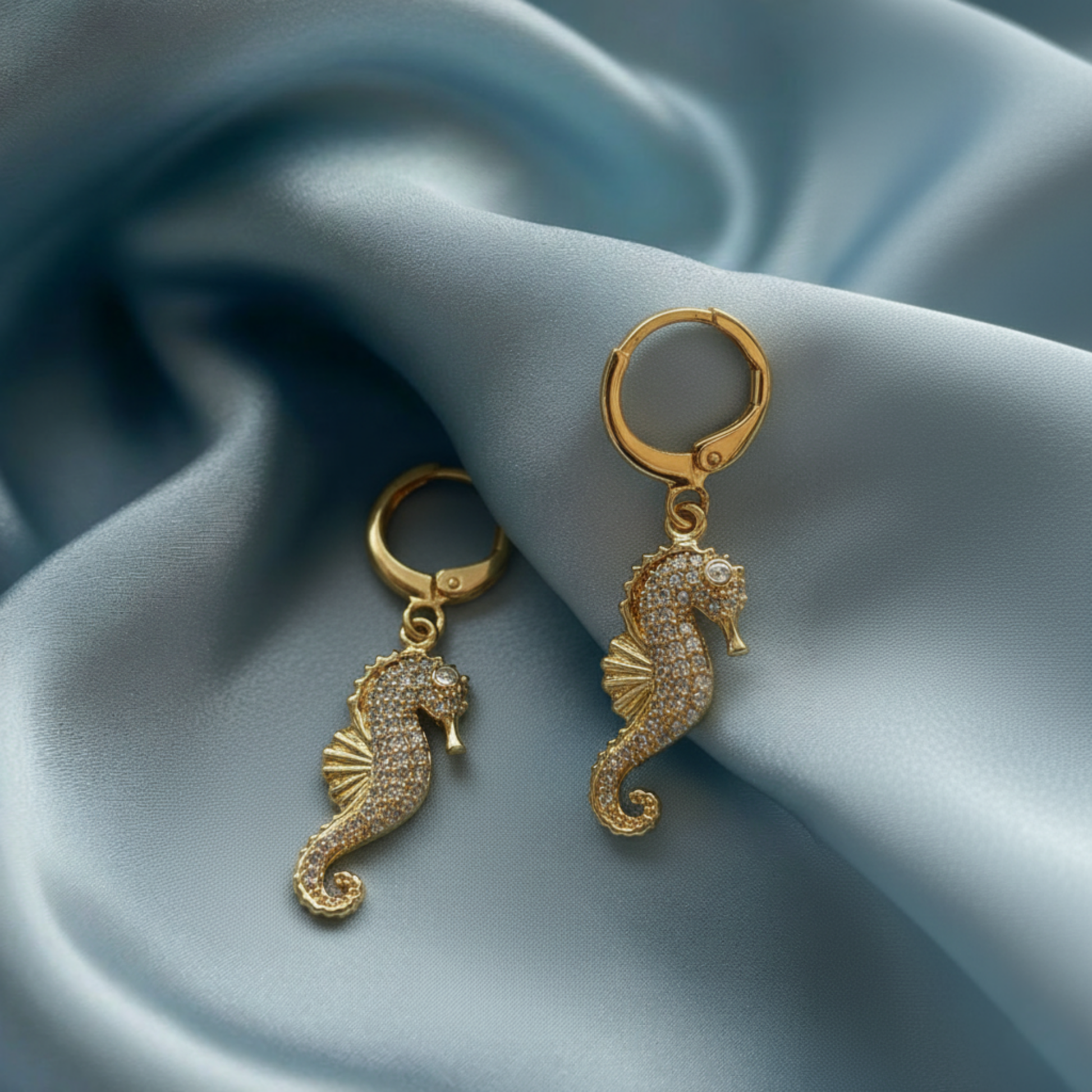 Aretes Colgantes tipo Huggies -Caballito de mar