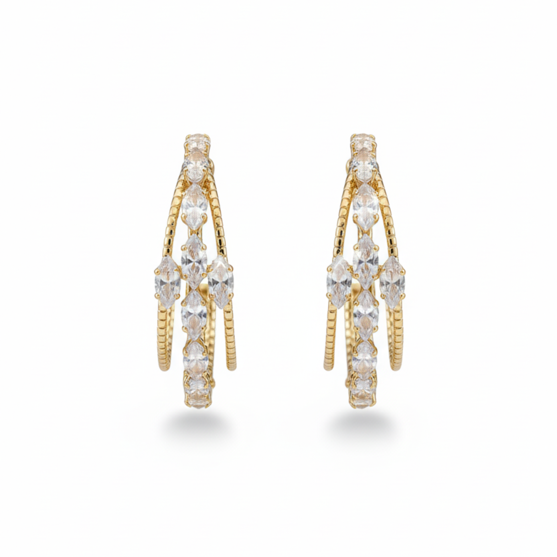 Arracadas de Circonias en acero inoxidable dorado con circonias incrustadas.