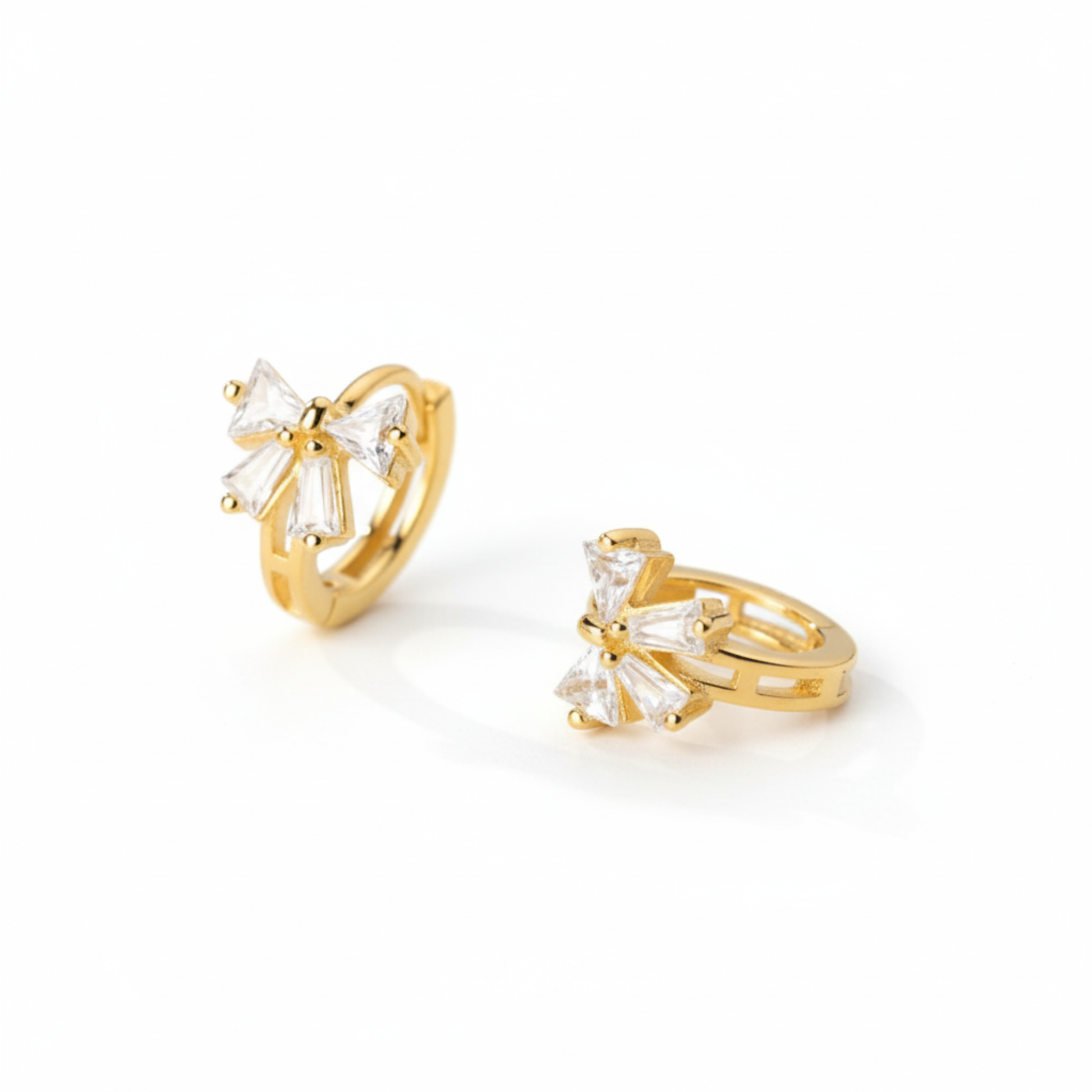 Arracadas Tipo Huggie Mini Moñito de Circonias en acero inoxidable dorado con circonias incrustadas.